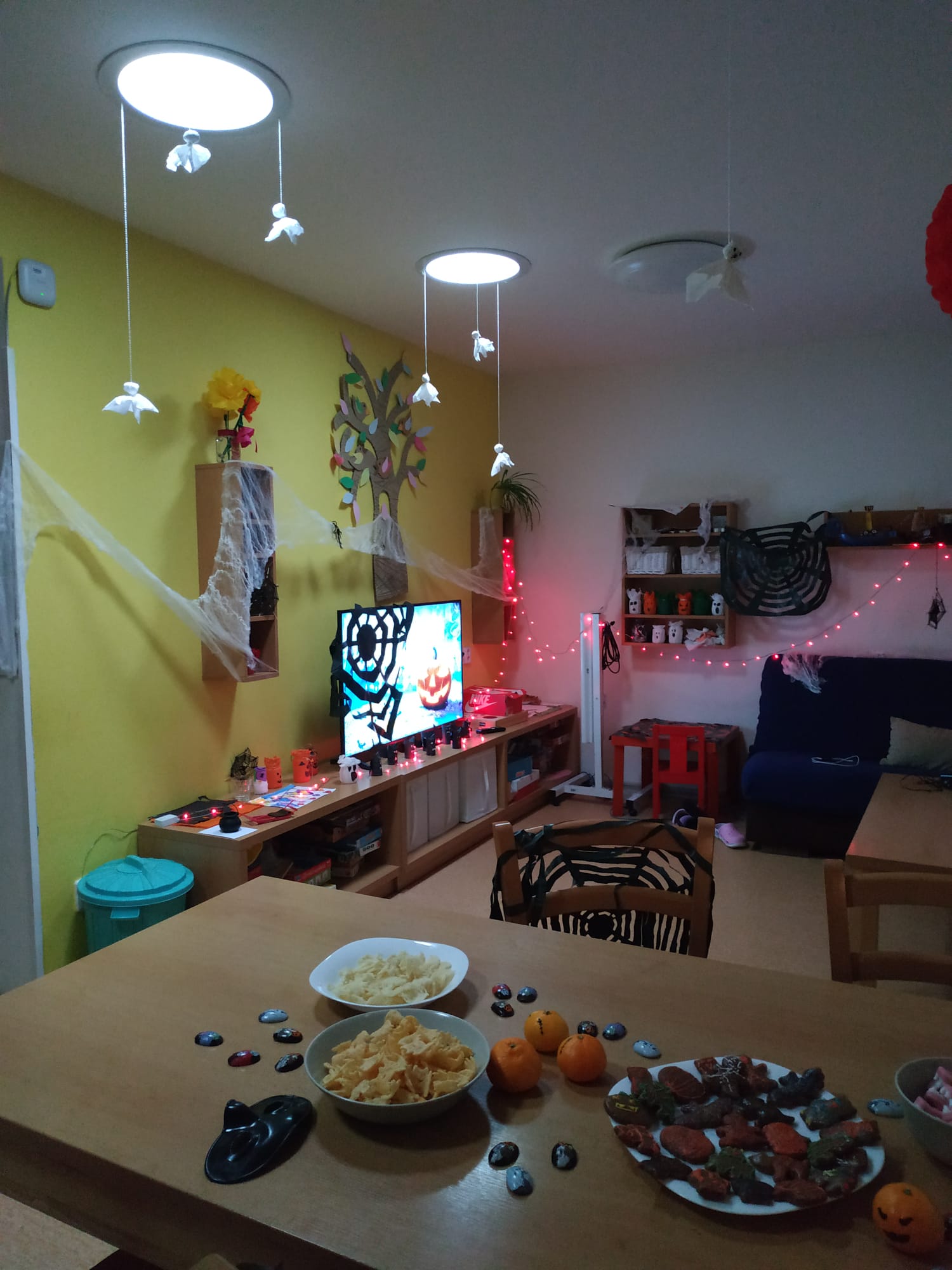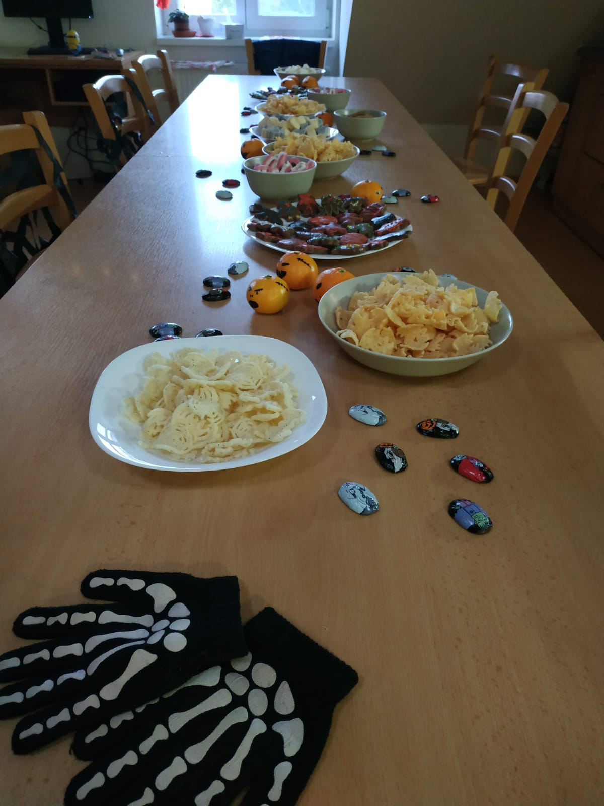 Halloween je sice svátek americký, v České republice je však stále více oblíbený. A taky – každý důvod k oslavě se hodí. A tak jsme mimo každoroční procházku po hřbitově a uctívání památky zesnulých začali slavit také tento svátek. Dětem jsme připravili celodenní program plný zábavy. Začali jsme hned dopoledne, vyráběním hallowenské výzdoby a masek. Odpoledne jsme si udělali párty plnou sladkostí, dobrot, zpěvu a tance. Po noční procházce po okolí nás čekalo ještě jedno překvapení - hallowenská stezka s úkoly. Děti si celý den moc užili, do všech aktivit se pouštěli s nadšením a radovali se z každé maličkosti. Starší se zapojili do organizace a příprav (za to velké díky) a vše probíhalo ve velmi příjemné, přátelské atmosféře. A to je pro nás největší odměnou :).