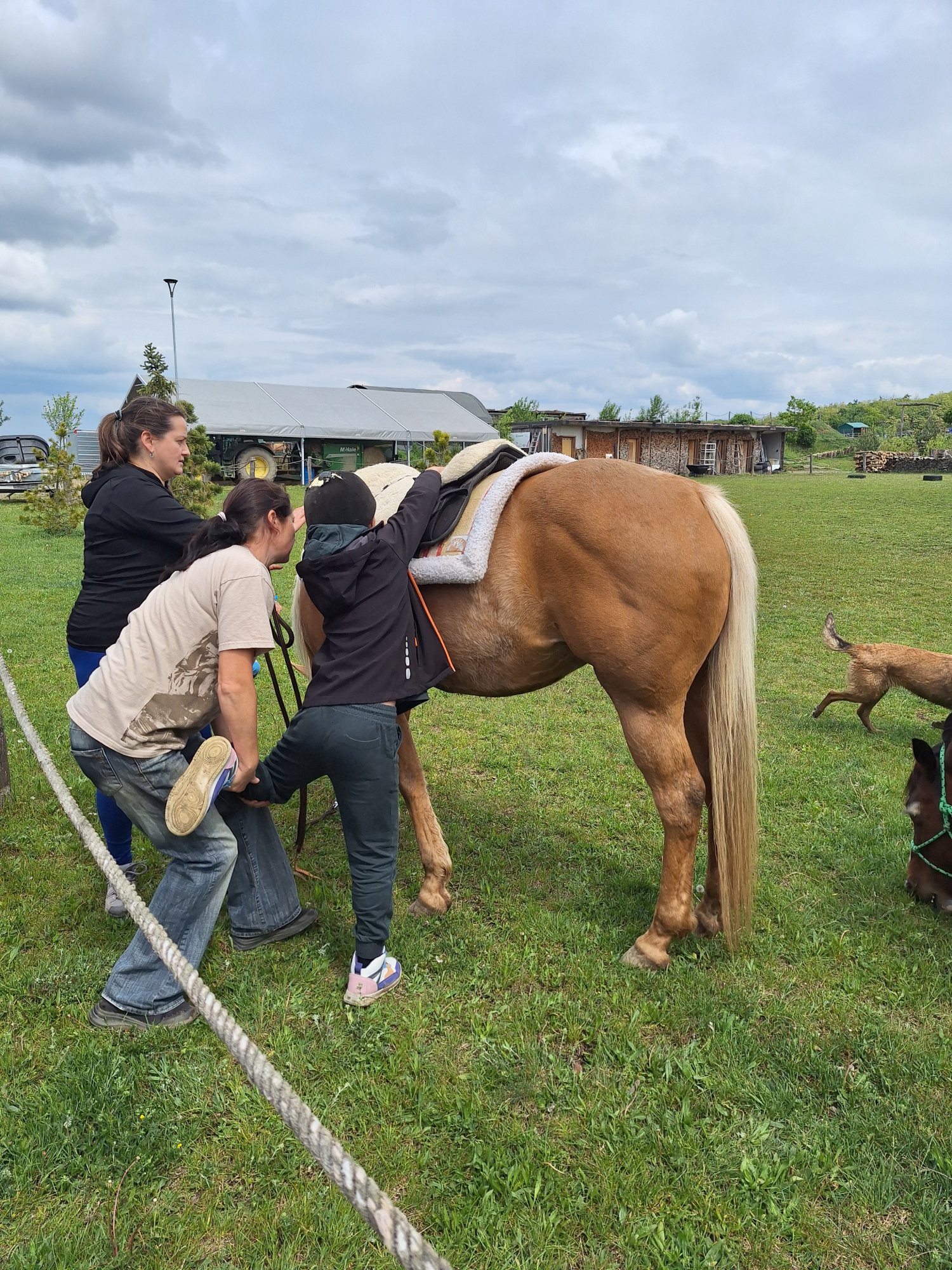 Ukázal nám kravičky s mláďaty, býky, koně, na kterých jsme se svezli i ocelové koně, kterými nás povozil po celé farmě. Po grilování a dobrém jídle zásluhou Petra jsme se odpoledne těšili do lanového centra. Tam jsme se všichni vyřádili, nikdo se nebál a zvládli jsme různé lanové překážky.