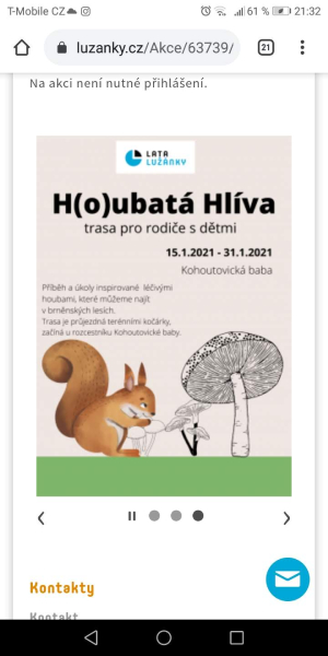 Zúčastnili jsme se například stezky „Hubatá hlíva“, kde jsme se dozvěděli mnoho zajímavostí o Hlívě ústřičné a prošli se po klidném lese v Kohoutovicích. Také v parku Lužánky jsme si užili Vánoční a Velikonoční stezku s úkoly či nedaleko našeho domova stezku „pro nadšené záchranáře“, pořádanou taktéž SVČ Lužánky.