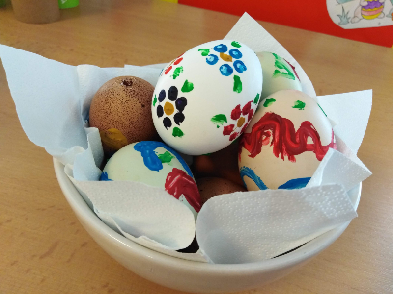 A už jsou tady Velikonoce. A tak se pilně připravujeme – barvíme vajíčka, malujeme zajíčky a kuřátka. Samozřejmě nesmí chybět pomlázka. Tu s námi každoročně upletl strejda Martin. Na Zelený čtvrtek se vydáváme opět do Lužánek, kde pro nás SVČ připravilo krásnou velikonoční stezku. Dozvěděli jsme se o Velikonocích zase něco víc. Na oběd jsme si dali výborný špenát od našich kuchařek a pak jsme se pustili do pečení perníčků. Protože počasí přálo, vydali jsme se opět na koloběžky, tentokrát jsme ujeli přes 6 kilometrů a na sluníčku si užili krásné jarní odpoledne :). V pátek jsme odpočívali a dívali se na pohádku „Hop“. A představte si, co se stalo!! Velikonoční zajíček se svou partou zamířil i k nám!! V sobotu ráno jsme měli vajíčka úplně všude. V lednici, v botníku, ve skříni, mezi příbory, v hrníčku i v koupelně. Byli jsme moc překvapení, protože jak říkal jeden chlapeček: „Já jsem ani nevěděl, že ten zajíček fakt existuje.“ No takovou návštěvu jsme teda nečekali :). V sobotu jsme upekli jidáše a provoněli si celý byt. V neděli navštívíme kostely, protože Velikonoce jsou sice hlavně křesťanské svátky, ale nikomu neuškodí chvilka ztišení, zamyšlení se a třeba i poděkování za to, co máme. No a v pondělí?? To už je každému jasné. To bude zas mela :D….